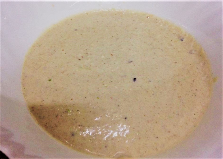 Roast the medium size onion and grind it also along with dry fruits paste. Add little water to make fine paste.